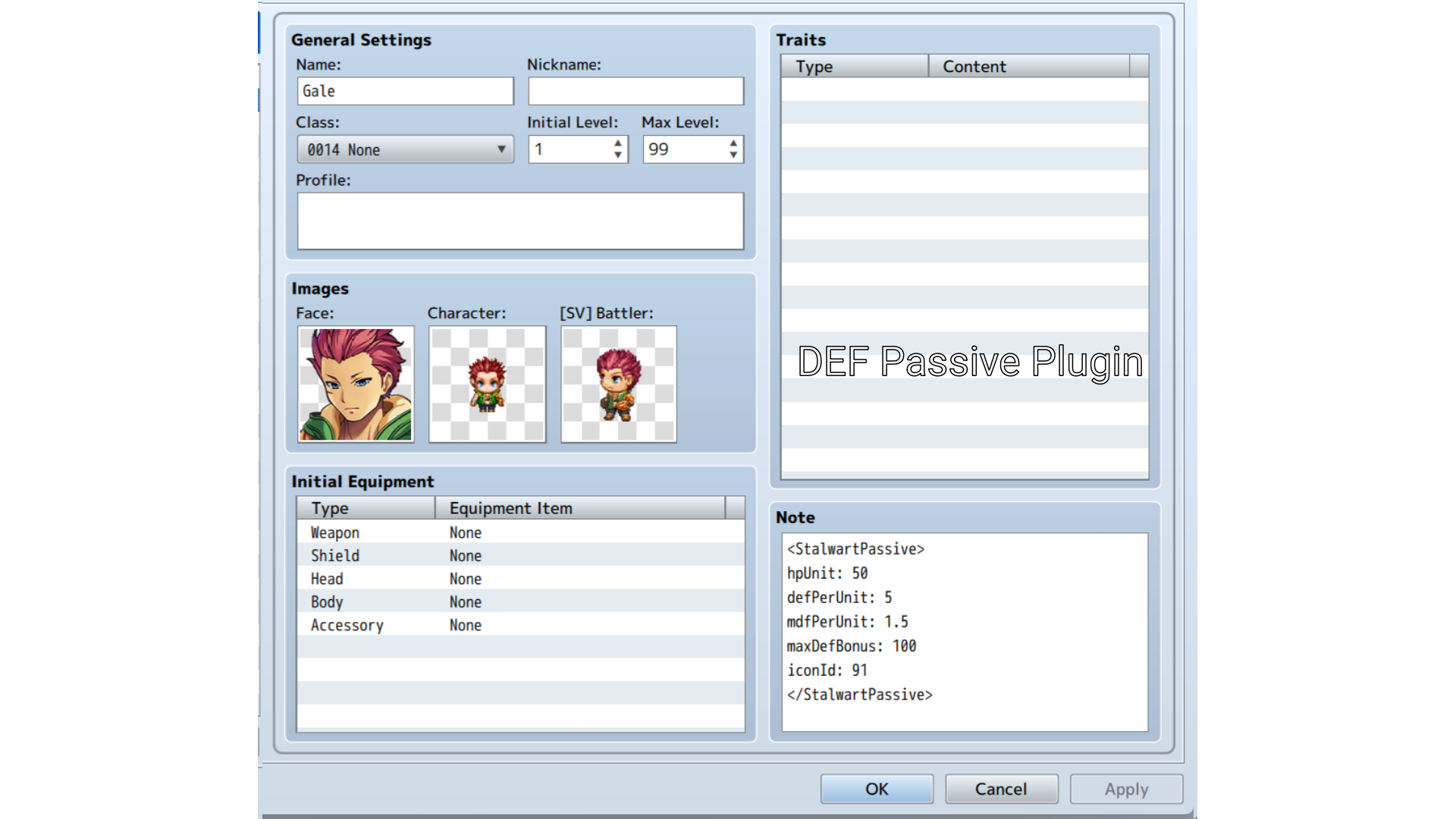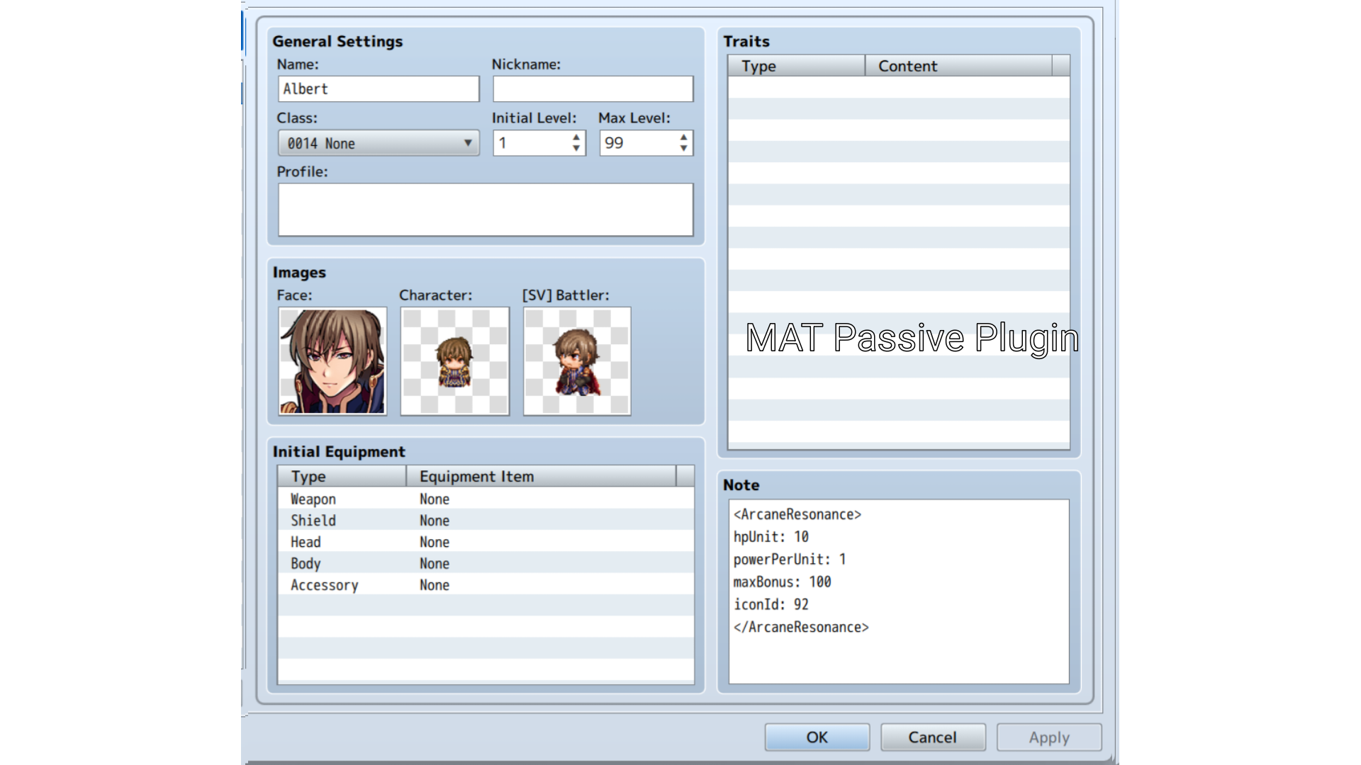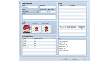 • Design freedom: You can choose to make your character specialized through the Actor's Note Tag, or create variety by placing Note Tags in the Class instead.